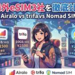 この記事では、海外eSIMの中でも特に人気の高いAiralo(エラロ)、trifa(トリファ)、Nomad SIM(ノマドシム)の3社を、料金・サポート・使いやすさの3つの視点から徹底比較します。