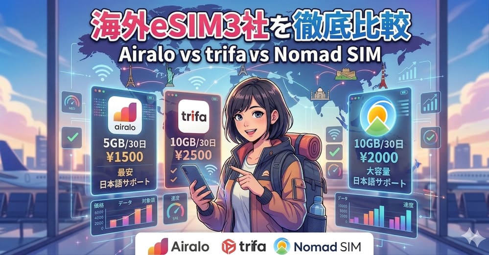 Airalo vs trifa vs Nomad SIM|海外eSIM3社を料金・サポート・使いやすさで徹底比較