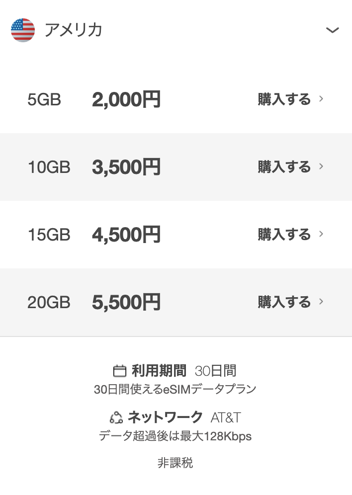 WEBサイトでアメリカのeSIMプランを選ぶ